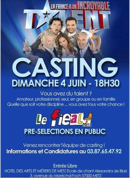 Venez y découvrir des dizaines de talents de tous les univers.A l’occasion d’une nouvelle saison lancée par la chaîne M6, un casting pour l’émission « La France a un Incroyable Talent » est annoncé à Metz.