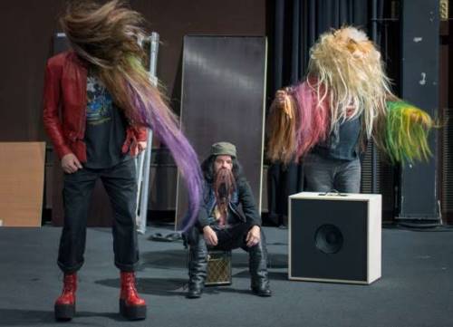 Alice Laloy se plaît à composer cette nouvelle pièce d’après un malentendu : des hommes d’âge mûr, poilus, en t-shirts noirs et cuirs cloutés rencontrent un public de jeunes enfants. Mais semble-t-il, rien n’a été prévu : pas de gradin, pas de coussins. Juste ces trois tatoués barbus, vrais routiers du rock avec leurs caisses pleines dans un grand espace vide, en train de préparer un autre spectacle pour un autre public. Cultivant l’art du contrepied à rebrousse-poil des idées reçues, la metteuse en scène invente une transformation, passant du vide à un cocon velu et charnu qui englobe spectateurs et acteurs. Dans cette petite zone de mirage, tout ce qui sort des caisses est poilu : guitares, manteaux, chaussures? Le poil sert de matière métaphorique, de membrane sensible pour une éphémère ode à la tendresse et à l’inattendu. Ces gros bras, à la recherche d’un truc doux, tendre et sucré au milieu d’un monde de brutes, montent du théâtre comme on fait du camping. Tout se gonfle et se déploie pour former une ?poilosphère? en forme de chrysalide, qui se rangera dans les cantines métalliques pour une autre date, dans une autre ville.