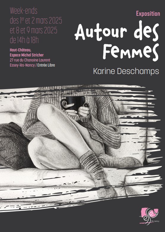 Artiste autodidacte, Karine Deschamps nous invite à découvrir ses œuvres : des dessins en noir et blanc réalisés aux crayons, mais aussi quelques aquarelles pour une touche de couleurs. Plusieurs thématiques et visuels sont abordés, mais les femmes ainsi que leur parcours, leurs passions et leur entraide, sont majoritairement présentes dans ce travail artistique.