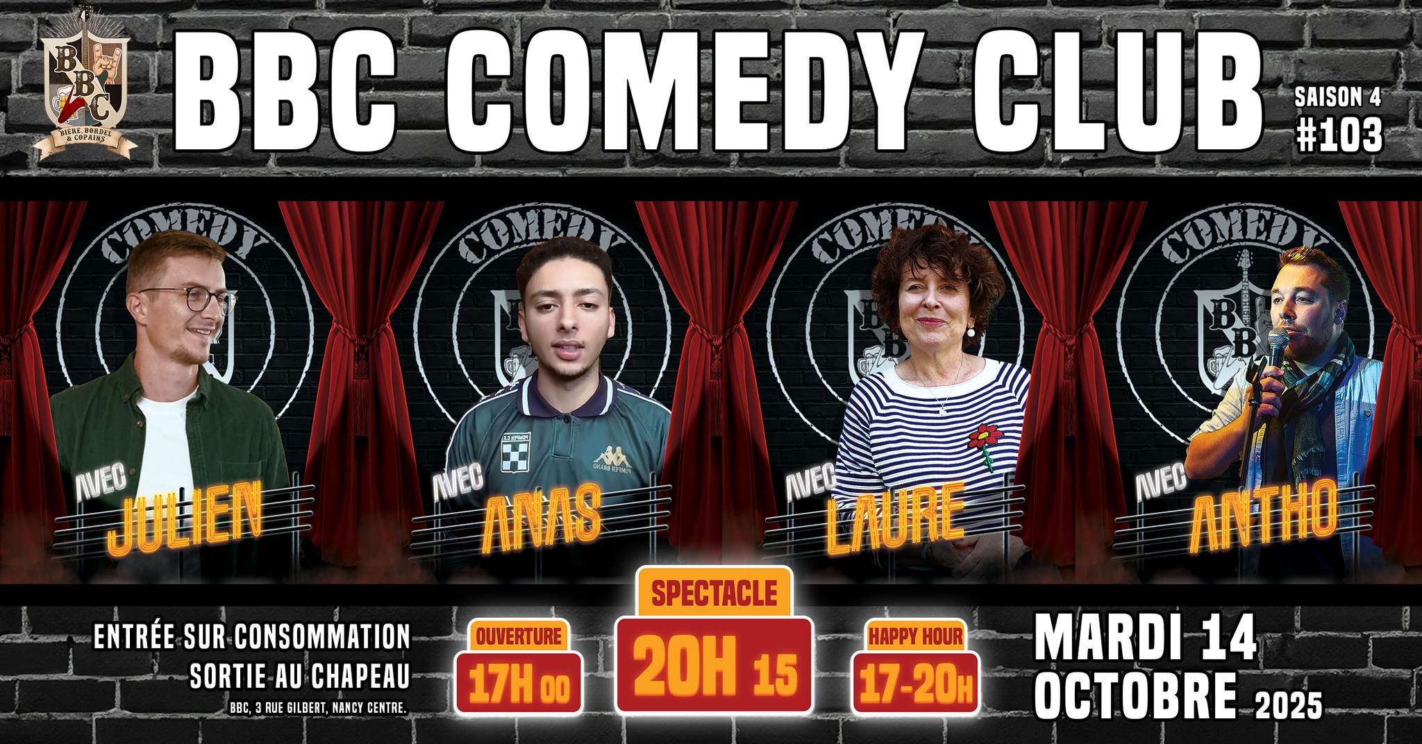 ?? Édition #103 du BBC Comedy Club (saison 4) – Mardi 14 octobre à 20h15 !