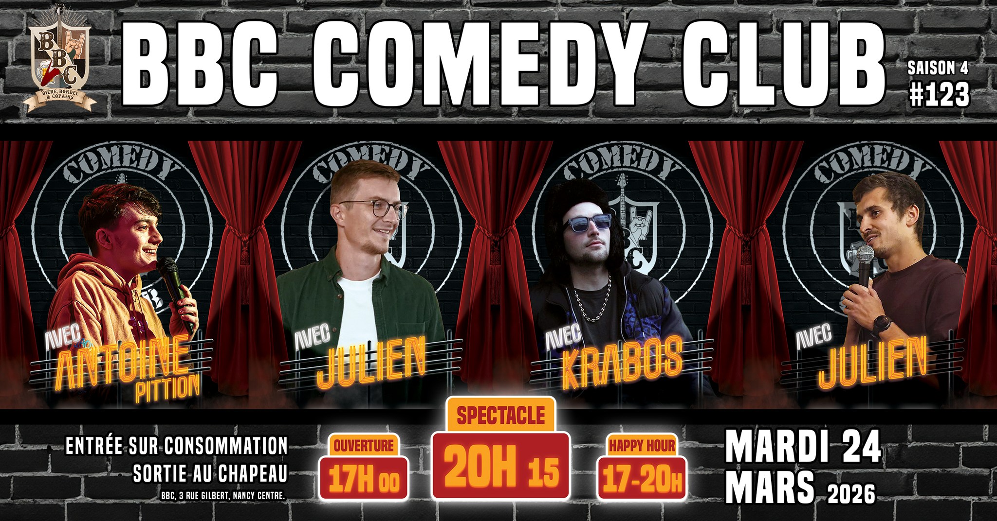 🎤🤣 Édition #123 du BBC Comedy Club (saison 4) – Mardi 24 mars 2026 à 20h15 !
