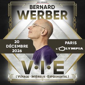 Le spectacle V.I.E pour VOYAGE INTERIEUR EXPERIMENTAL, est une expérience d’un nouveau genre.Dans ce mélange de rêvé éveillé, de méditation guidée, d’humour et de musique relaxante, l’écrivain Bernard Werber vous invite à pratiquer du « TOURISME SPIRITUEL ».