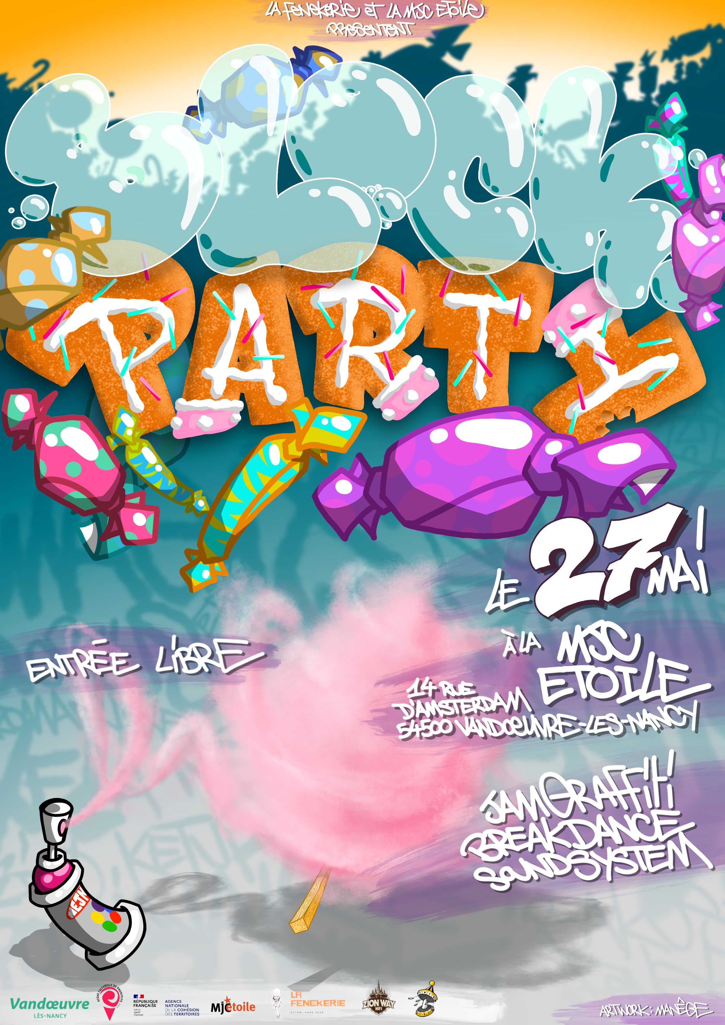La Fenekerie présente la nouvelle édition de la Block Party, un rassemblement de graffeurs issus de la scène lorraine et vandopérienne.