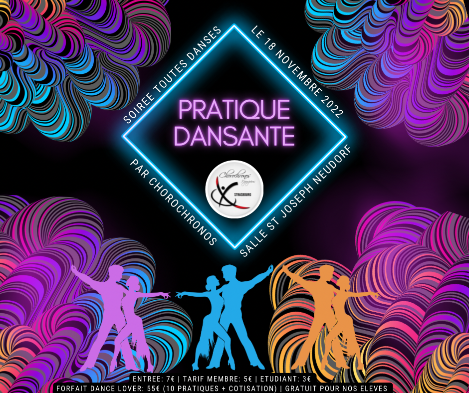 Ces soirées sont comprises dans les forfaits pour les élèves inscrits mais également ouvertes aux membres de l'association à 5€/soirée et aux non membres à 7€/soirée. Il y également la possibilité de prépayer toutes les pratiques de l'année en choisissant le forfait "Danse Lovers" à 55€ (avec 1 pratique offerte et l'adhésion à l'association incluse).