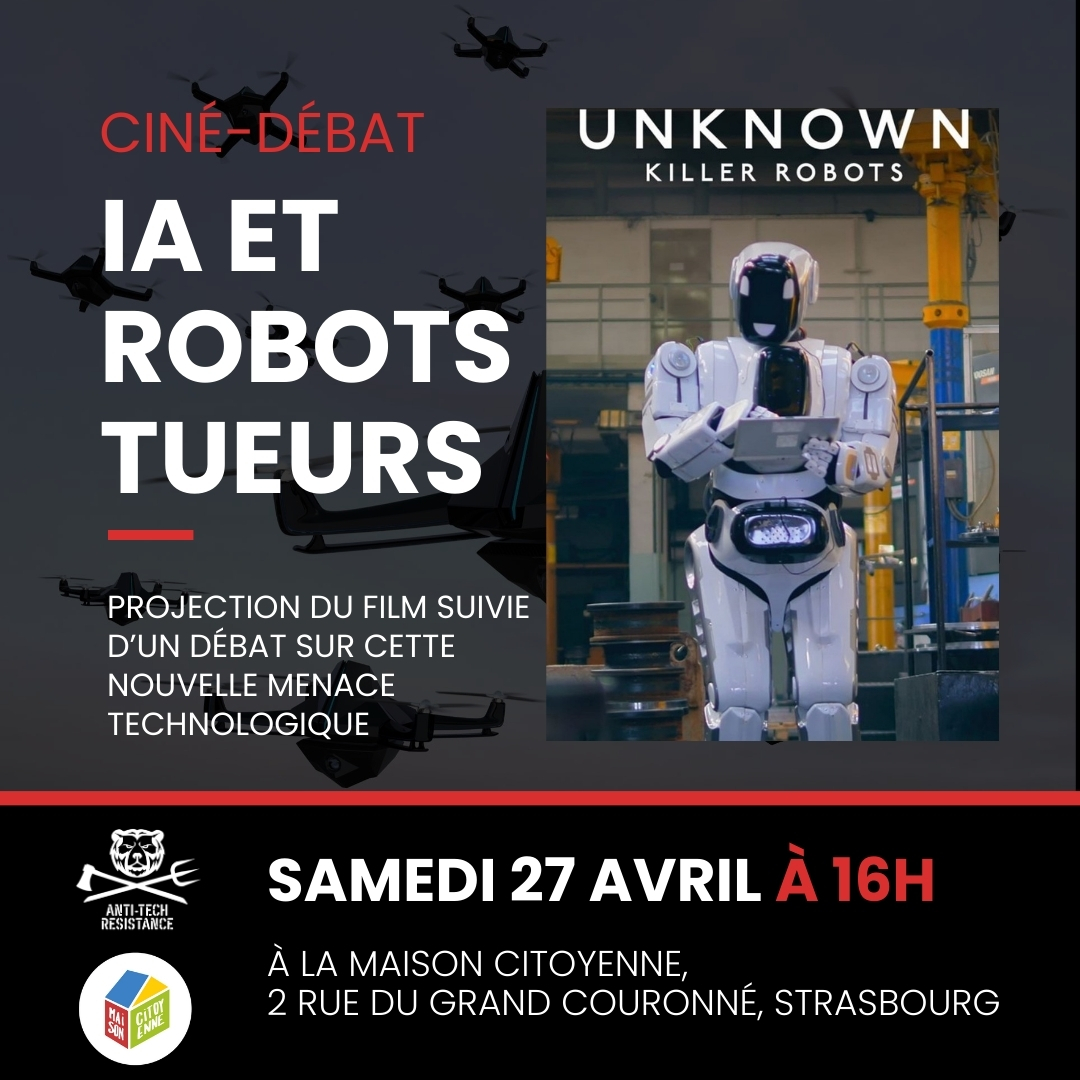 Pour tenter de répondre à ces questions, le groupe local strasbourgeois du mouvement Anti-Tech Resistance (ATR) vous propose de ce ciné-débat le samedi 27 avril 2024 à 16h à la Maison citoyenne, 2 rue du Grand Couronné dans le quartier neudorf à Strasbourg.