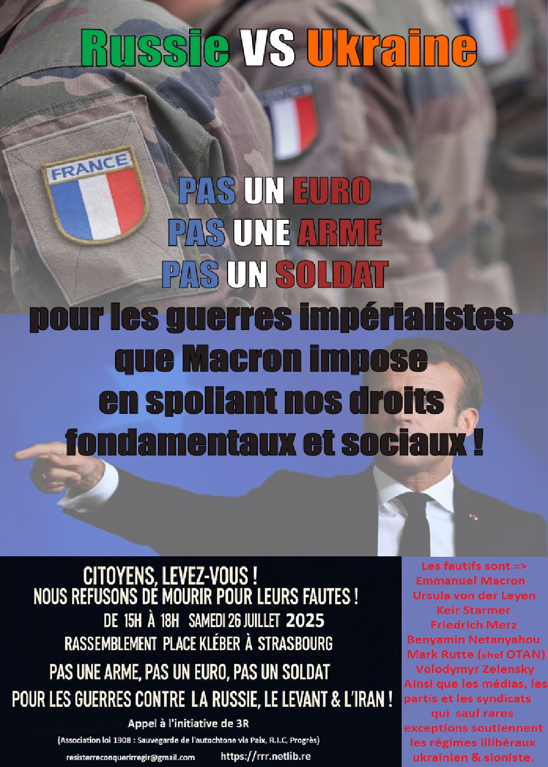 Françaises, Français, le moment est venu de regarder la vérité en face, aussi amère soit-elle. Nos dirigeants, ceux-là mêmes qui se targuent de nous représenter, sont en train de nous entraîner vers l'abîme. Ursula von der Leyen, Emmanuel Macron, et les têtes pensantes de l'OTAN nous dictent une guerre qui n'est pas la nôtre, une guerre dont les germes ont été semés par leurs propres calculs géopolitiques et leurs provocations incessantes.
