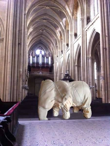 Le projet Création découle de l’impact généré par l’architecture monumentale, la beauté et l’atmosphère mystérieuse qui entourent la basilique Saint-Vincent. Ainsi, l’installation consistera en la production d’une dizaine d’animaux de taille réelle, recouverts de tissus et attachés avec du cordon. Des animaux exotiques peupleront l’édifice... Un éléphant, une girafe, un tigre, un crocodile, un tortue, un aigle.... Présentés comme des objets et plongeant le visiteur dans une situation inhabituelle, l’installation constituera un bestiaire contemporain qui ne manquera pas de faire écho au bestiaire médiéval caché dans la basilique Saint-Vincent.