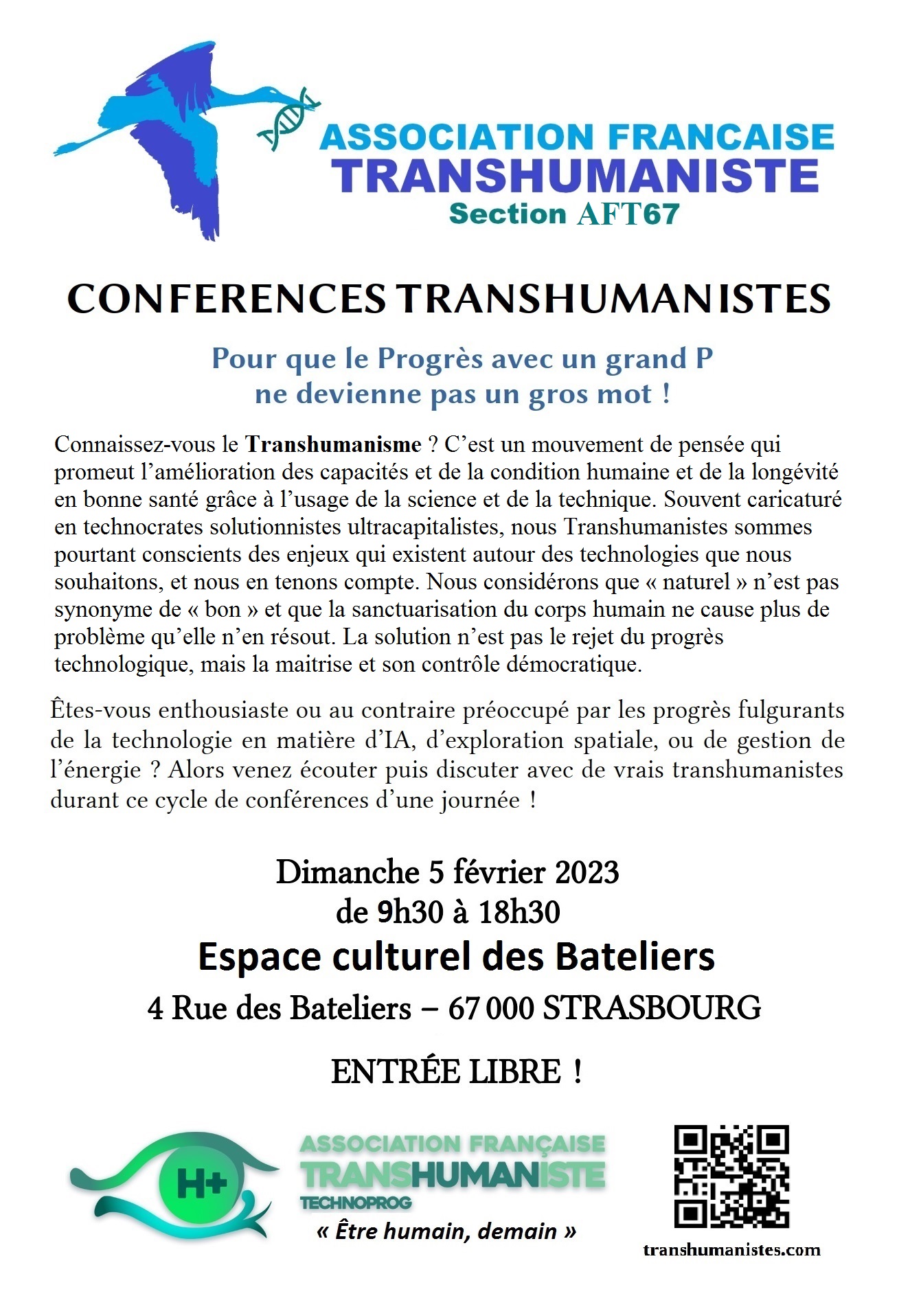 https://transhumanistes.com/ https://www.facebook.com/AFT.technoprog https://www.twitter.com/aft_technoprog https://www.instagram.com/transhumanistes_fr/ technoprogstrasbourg@gmail.com https://www.eventbrite.fr/e/billets-confe-pour-que-le-progres-avec-un-grand-p-ne-devienne-pas-un-gros-mot-526929098117