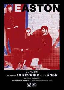 Easton est un groupe de rock Nancéen formé par trois copains qui ont fait leurs gammes pendant 23 ans en s’amusant. Leur première rencontre se passe sur les bancs de la fac. Depuis, ils n’ont cessé de jouer ensemble.