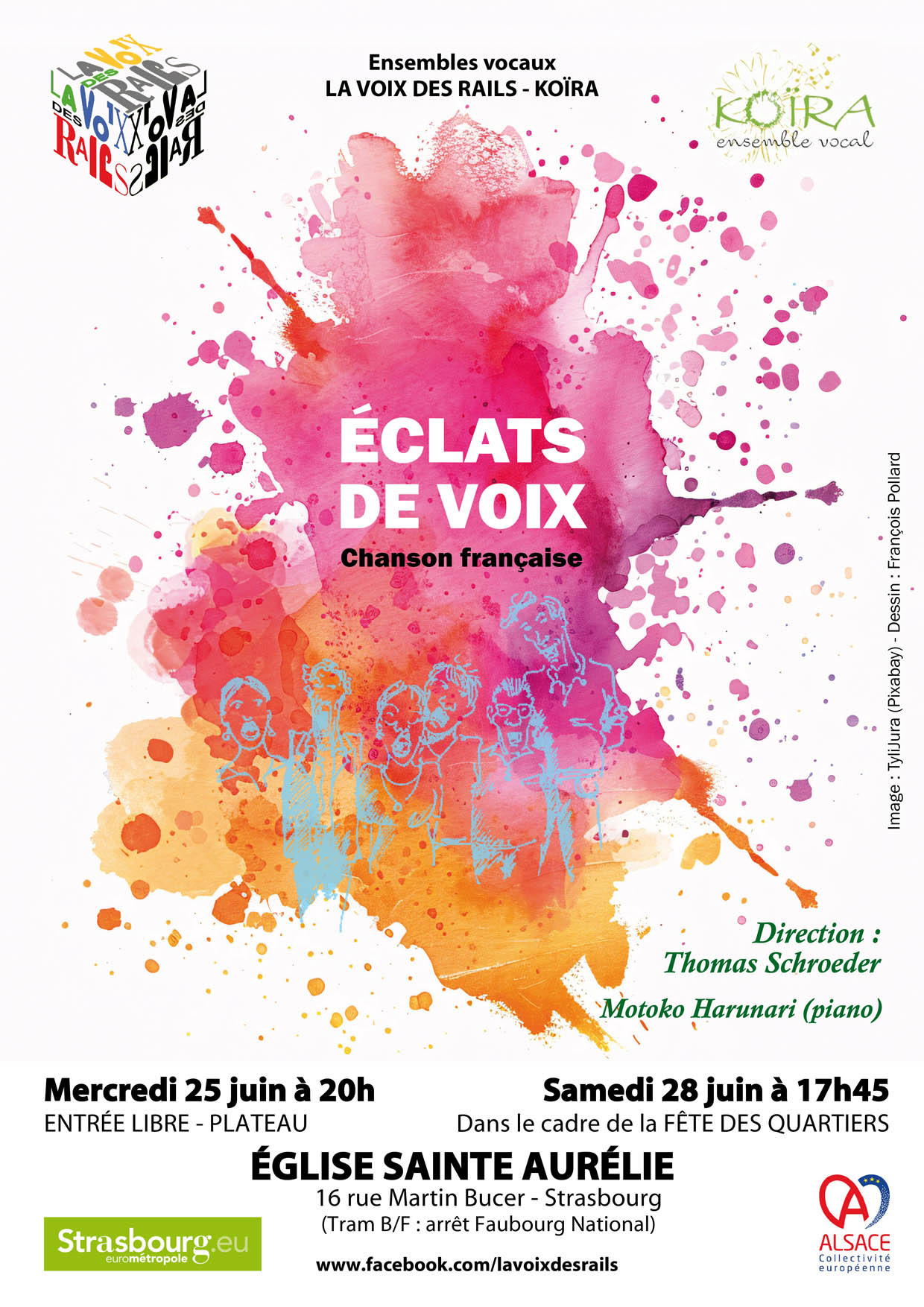 Le choeur La Voix des rails est un ensemble vocal intergénérationnel du quartier gare de Strasbourg. Créé en 2006, il rassemble des choristes enthousiastes de tout âge passionnés de chants polyphoniques dans des genres, des langues et des registres variés.