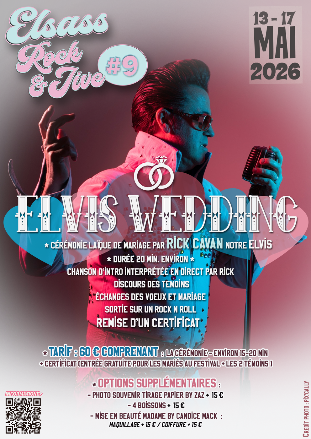 Uniquement sur réservation et payable d'avance en écrivant à elsassrockandjive@gmail.com avec comme objet : mariage Elvis