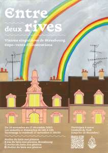 "Entre deux rives" est une exposition par celles et ceux qui habitent Strasbourg. En cette fin d'annnée, les artistes de l'atelier ont eu à coeur de proposer une lecture plus personnelle de notre ville. Un détour moins touristique mais tout aussi fantastique!