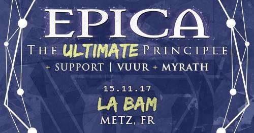 Les titans du Metal Symphonique néerlandais EPICA sont de retour pour l’étape européenne de The Ultimate Principle Tour en novembre prochain. Après une date complète au Zénith de Paris en compagnie de Powerwolf en mars dernier, EPICA est déjà de retour en Europe ! À cette occasion, EPICA sera accompagné de ’VUUR’, le nouveau groupe d’Anneke Van Giersbergen et du groupe de Metal Progressif tunisien MYRATH.