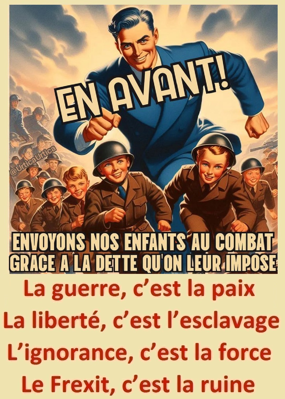 * Georges Orwell en fit une dystopie et @UrticaUrtica dessina les méfaits des collabos de l’oligarchie qui squattent l’Élysée & Matignon.