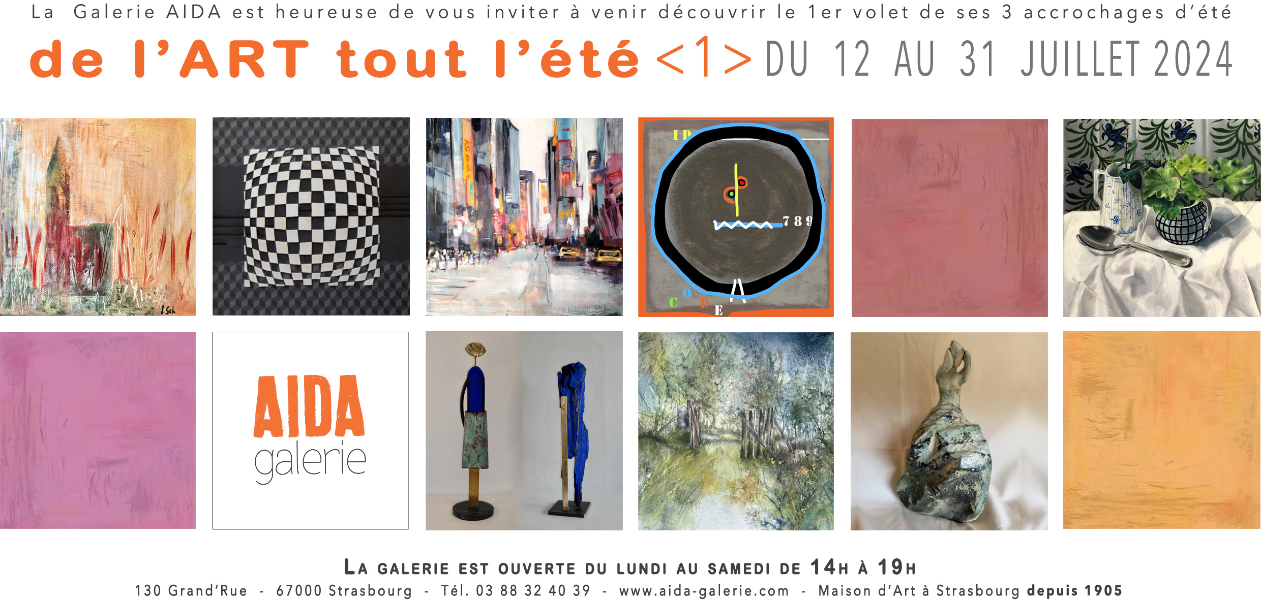 Les expositions d’été d’AIDA Galerie sont de retour avec cette première exposition qui ouvre notre cycle estival qui en comprendra 3 successives. On y verra des silhouettes féminines en terre cuite avec, été oblige, beaucoup de pleine nature et beaucoup de paysages en aquarelles et en peintures. On y ajoutera un peu de street art, un peu d’op’art et encore un zeste de récup’art... Rien de mieux qu’un bon cocktail pour commencer l’été !