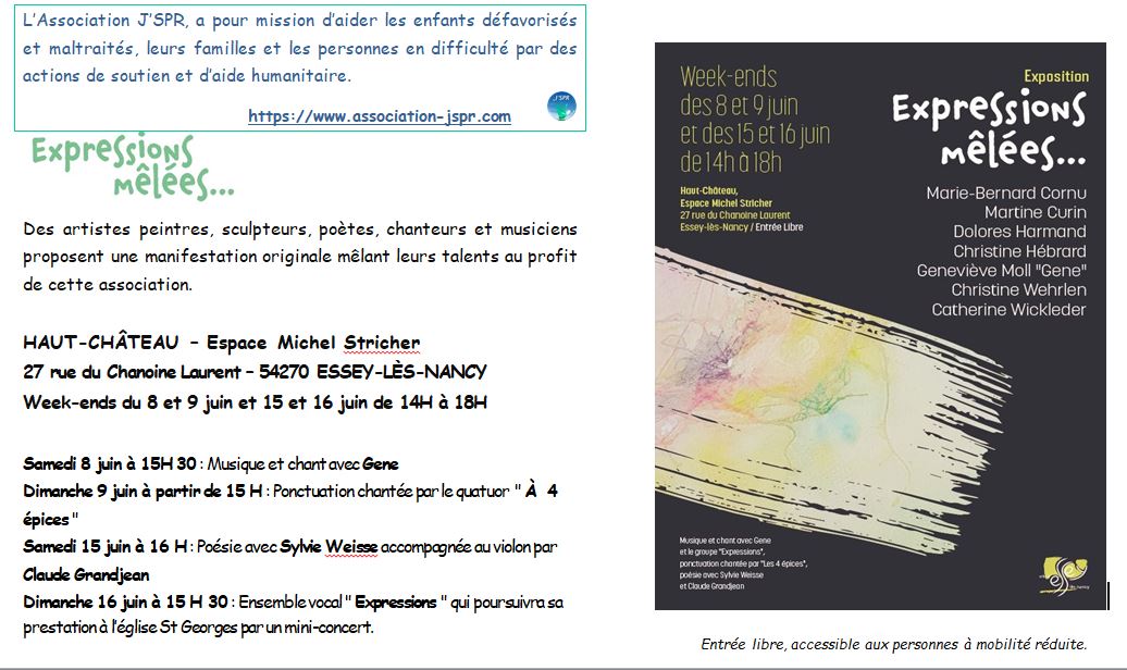 Des artistes de différents horizons proposent une manifestation au profit de l'association J'SPR.