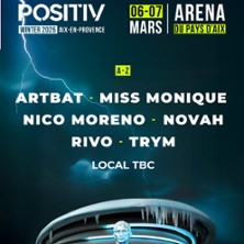 POSITIV WINTER 2026 débarque à l’Arena du Pays d’Aix ! 6 & 7 mars 2026 - 2 jours 100% indoor avec une scénographie givrée et une ambiance glaciale & électrique !LINE-UP : Vendredi 6 mars Artbat Miss Monique Rivo Samedi 7 mars Nico Moreno Novah TrymEt des surprises locales viendront compléter la programmation ! HorairesOuverture du parking à 16H30Ouverture des portes à 17H00Début du show à 18H00INFORMATIONS IMPORTANTES • Toute sortie du festival est définitive • Les Pass 2 jours sont individuels et non cessibles entre chaque journée. • Les billets « Early », « Regular » et « Late » donnent accès aux mêmes prestations mais diffèrent dans leur tarification : o Early = tarif préférentiel réservé aux premiers acheteurs (quota limité).