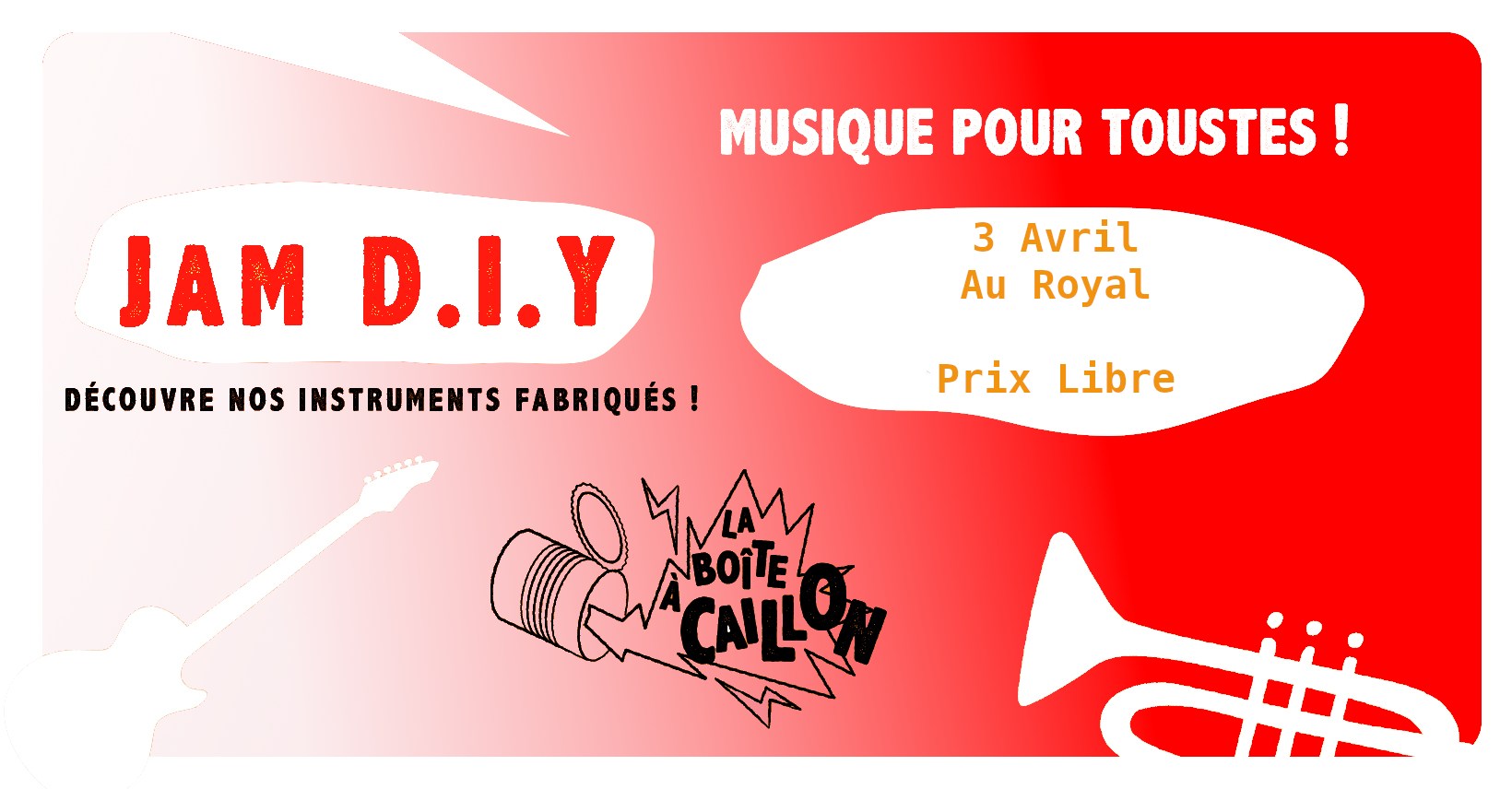 Un petit concert improvisé de l'asso suivie d'une Jam orchestrable avec les instruments DIY de La Boite A Caillon + des instruments traditionnels + open Mic.