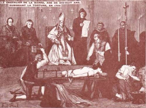C’est sous Louis XV, à Abbeville. Le chevalier de la Barre est un jeune homme sans grande envergure, un peu galopin, un tantinet libertin, qui n’a rien fait de répréhensible, si ce n’est de n’avoir pas salué une procession religieuse, mais qui va connaître, au terme d’un étonnant procès, une fin tragique. Il subira la torture ordinaire et extraordinaire, aura la langue coupée, la tête tranchée puis sera brûlé sur le bûcher avec le dictionnaire philosophique de Voltaire. Pourtant, même à cette époque, les condamnations pour blasphème étaient rares, sinon tombées en désuétude...