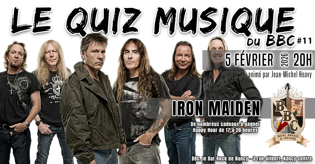 ⚡ Jeudi 5 février 2026 à 20h, le BBC part en croisade avec les seigneurs du heavy metal. Prépare-toi à au moins 15 questions sur les légendes qui ont transformé Eddie en icône et fait hurler des stades entiers à travers le monde.