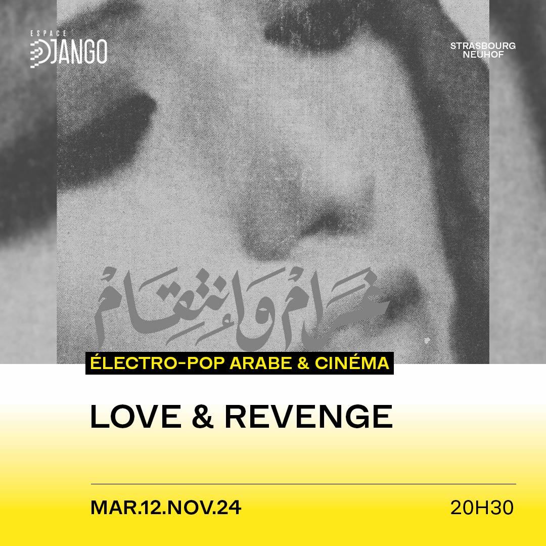 Vivons ensemble une soirée musicale, à regarder ! Le patrimoine de la chanson et du cinéma arabe sera revu et transfiguré par les sonorités d’aujourd’hui. Conçu par Randa Mirza et Wael Koudaih aux machines et à la vidéo, augmenté des virtuoses Mehdi Haddad au oud électrique et Julien Perraudeau aux claviers, ce spectacle nous emporte au fil des extraits de films remixés en parfaite synchronisation avec la musique. Une cérémonie chamanique qui invoque la résurgence d’une époque évanouie où le monde arabe se présentait joyeux et candide dans ses badinages, ardent et immodéré dans ses drames et ses mélodrames. Love and Revenge porte ainsi un regard sans équivoque sur l’émancipation des femmes dans la société arabe et vise à bannir les clichés, briser l’idée reçue d’un monde arabe masculin, violent et sanguinaire. Laissez bouger vos pieds, vos hanches, ouvrez grand vos oreilles… et vos yeux !