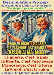 Alors que nos dirigeants nous précipitent chaque jour un peu plus dans l’abîme de la cobelligérance, sacrifiant nos fils et nos ressources dans des conflits qui ne sont pas les nôtres - de l'Ukraine à l'Iran - l'association 3R vous invite à relever la tête.