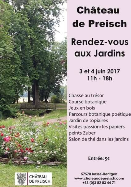 Le parc anglais du château de Preisch fut élaboré à partir de 1812 pour mettre en valeur la motte féodal de l’ancien château fort. Ses doubles douves, ses passerelles en fonte et ses arbres bicentenaires en font un lieu hautement romantique. Un parcours botanique oriente le visiteur. L’ancien potager est devenu un jardin de topiaires expressionnistes imaginé par Hubert Puzenat, architecte paysagiste.Au programme de cette édition :