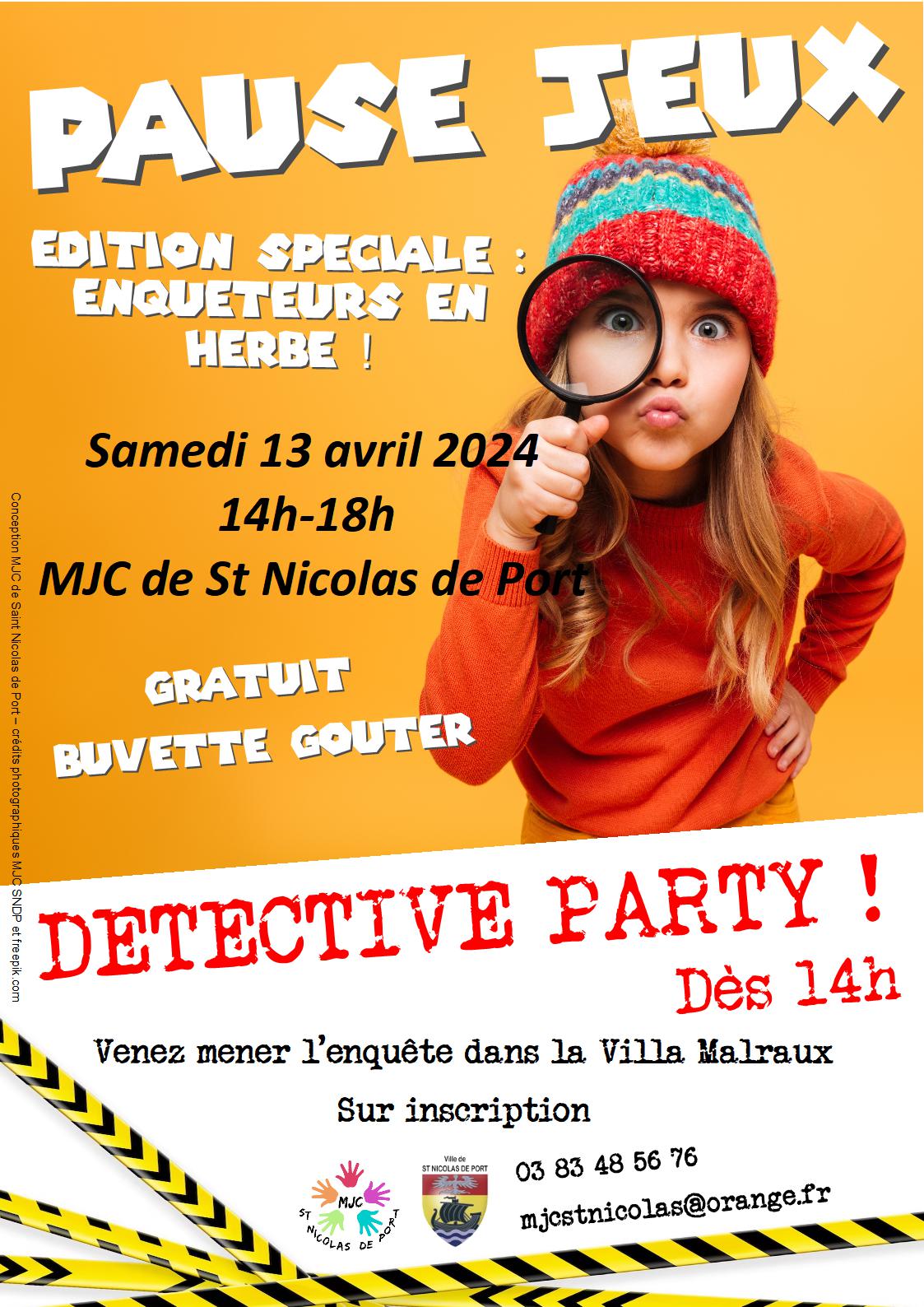 Inscriptions obligatoire pour la Détective Party à mjcstnicolas@orange.fr