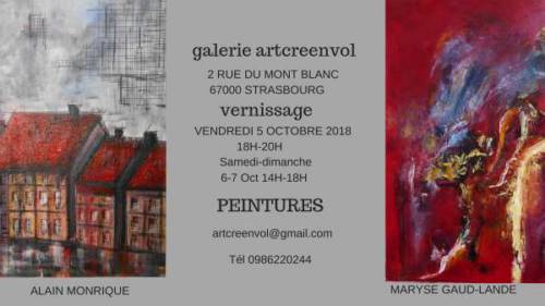 et Alain Monrique qui aura lieu le VENDREDI 5 OCT de 18H à 20H ouvert samedi 6 et dimanche 7 oct de 14H à 18h