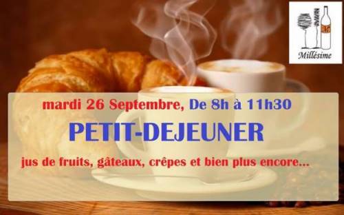Venez nous retrouver pour le petit déjeuner Millésime mardi 26 septembre dans le hall.