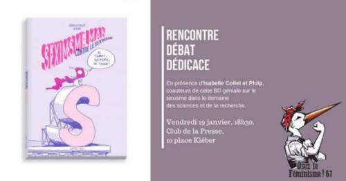 Osez le féminisme 67 fait son entrée en 2018 en invitant Isabelle Collet et Phiip, respectivement autrice et dessinateur de la BD ’Seximsme Man contre le Seximsme’.