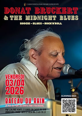 Notre vétéran du Blues, Donat Bruckert sera en concert avec son groupe "Midnight Blues", préparez vous à danser !