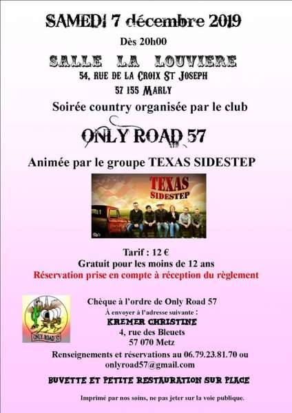 L’association "Only Road 57" organise une grande soirée country à MARLY, samedi 7 Décembre 2019, dès 20h.
