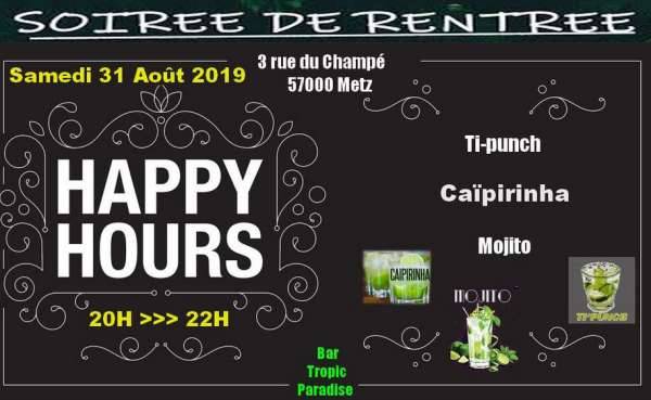 À NOTRE HAPPY HOURS LE SAMEDI 31 AOÛt