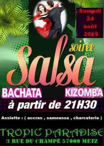 Le bar TROPIC PARADISE vous transportera : destination Amérique Latine ;SAMEDI 24 AOÛT 2019 , à partir de 21H30 , pour une soirée endiablée , aux couleurs des rythmes Latino : ( Salsa , Bachata , Mérengué , Kizomba ) pour les novices ou confirmés .