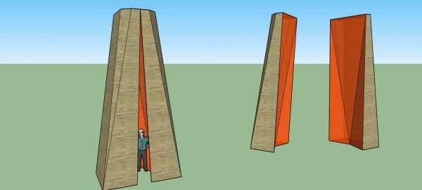 Sourceest un hommage à la colline St Croix, berceau de la ville. L’installation est également un repère, une balise, un lieu sacré. C’est une invitation à se rassembler et imaginer le riche passé/futur de la colline. Un éclairage en son intérieur et un tapis de lumière entourant l’installation, délimitent un espace où le temps semble suspendu, neutre. C’estle temps d’une pause.