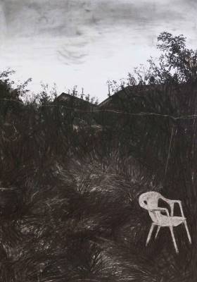 François Génot fait acte de 10 ans de parcours artistique et revient sur les fondements de sa pratique : le dessin. Il choisit de se rapprocher de son environnement quotidien et de travailler avec le temps, de sonder un peu plus ses sujets de prédilection. C’est dans une ambiance à la fois fantomatique et réaliste que se croisent des paysages, des détails, des présences humaines et animales. Autant de signes d’apparitions où le végétal agit comme un révélateur de lumières dans les amas sombres de la matière. Spirit Carbon c’est «l’esprit du lieu», sa mémoire carbone, la trace des sujets qui le traverse, l’antichambre caverneuse de l’esprit de l’artiste, l’esprit des outils employés qui prennent activement part à ce nouvel ensemble.