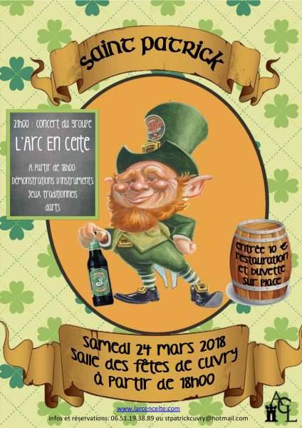 Venez fêter la St Patrick le 24 mars à partir de 18h00 à la salle des fêtes de Cuvry!