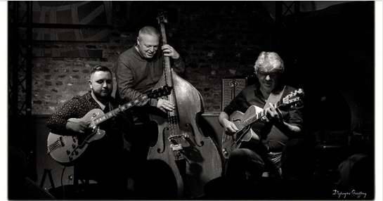 par un amour inconditionnel pour le jazz et la musique en général. Leur répertoire? du jazz manouche, mais pas que. Les 3 musiciens se baladent de Django Reinhardt à Charlie Parker en passant par Toots Thielemans et Stevie Wonder. Venez partager leur amour de la musique, il n’a que peu de limites et pas de frontière.