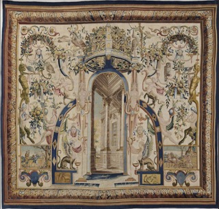 Légende : Atelier de Charles Mité à Nancy, Tapisserie « Mars-Avril » de la tenture « Les Mois grotesques », 1699-1710. Zagreb (Croatie), Archidiocèse de Zagreb