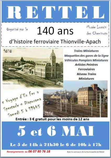Pour la 4ème fois de son histoire, l’association du "Musée Lorrain des Cheminots" va organiser à Rettel une exposition sur le thème : « 140 ans d’histoire ferroviaire Thionville-Apach ».