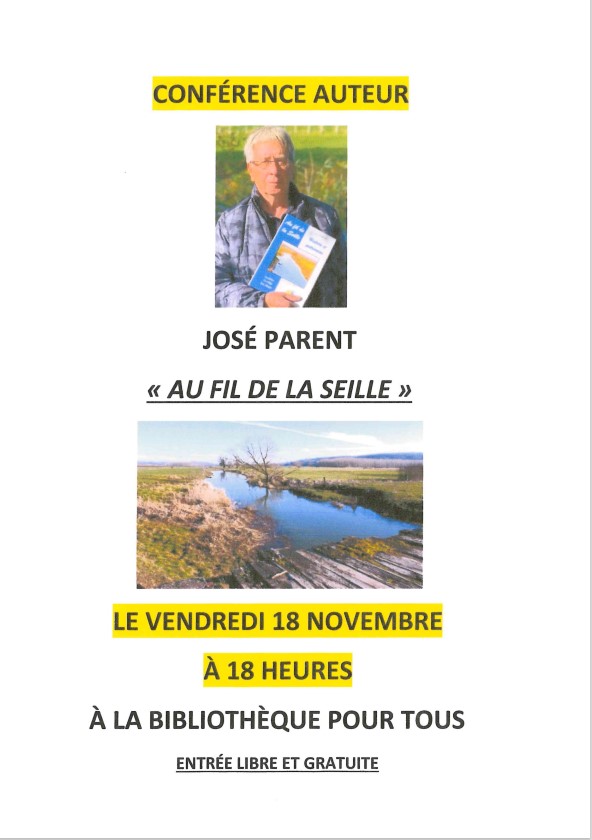 Les bibliothécaires vous invitent à la Bibliothèque Pour Tous à la Maison des Associations d’Essey-lès-Nancy le vendredi 18 novembre à 18 heures pour une conférence de l’auteur José Parent intitulée « Au fil de la seille ». Il évoquera la richesse biologique des mares et des présalés, l’exploitation du sel depuis son origine, ainsi que l’historique des « villages frontières » autour de cette rivière…
