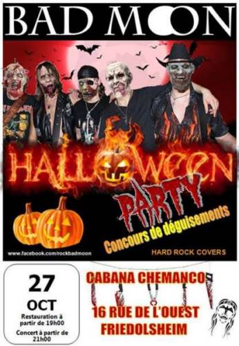 Venez fêter Halloween avec les BAD MOON au Cabana Chemanco en direct des ténèbres... Le groupe va vous envoûter, vous dévorer..