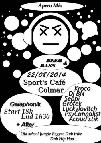 L’asso Gaïaphonik organise la toute première édition de la Beer & Bass avec à la carte de la Bière pression au choix ainsi qu’une bonne grosse session Hip-hop old school, Jungle, ragga Drum’n’Bass, Reggae, Dub, Tribe.