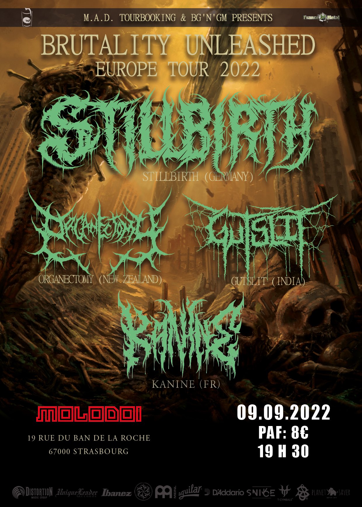 Brutality Unleashed Tour 2022 : STILLBIRTH • ORGANECTOMY • GUTSLIT • KANINE | Molodoï Strasbourg FR