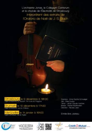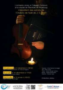L’orchestre Jonas, le collegium Cantorum et la chorale de l’Électricité de Strasbourg interprètent des extraits de l’Oratorio de Noël de J. S. BACH, le 9 décembre à 18h30 à l’Église protestante du Neudorf, 144 route du polygone