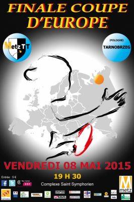 La finale de la coupe d’Europe Dames Tennis de table c’est à Metz le 8 mai 2015 à 19h30.