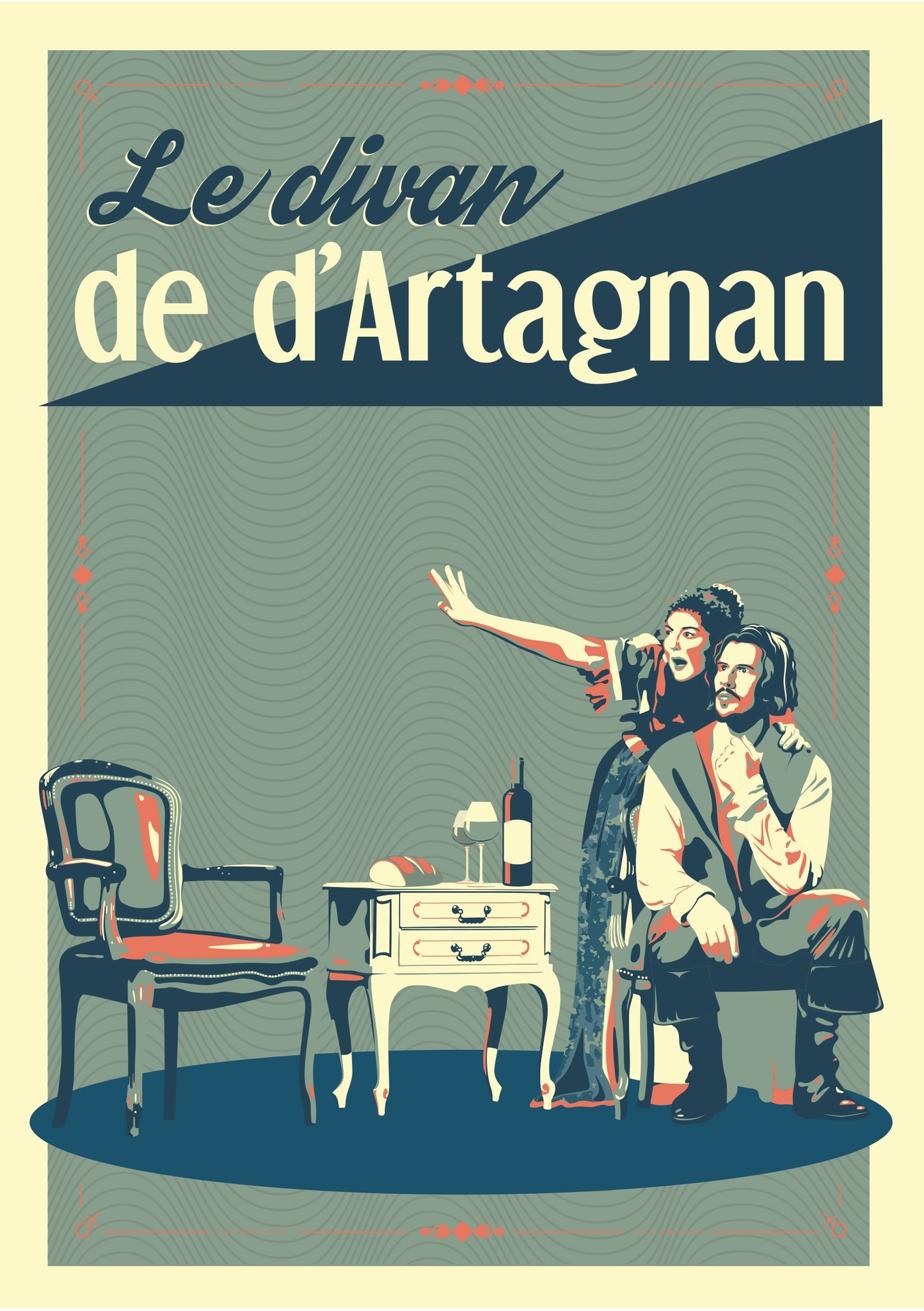 "Le divan de d’Artagnan est une comédie furieusement décalée, qui croque le célèbre héros de Dumas pour en faire une parodie de pièce pas tout à fait d’époque, mais pas vraiment contemporaine... Pendant près d’une heure et demi, découvrez le Mousquetaire le plus célèbre du monde sous un angle nouveau, et un impertinent professeur aux multiples surprises !"