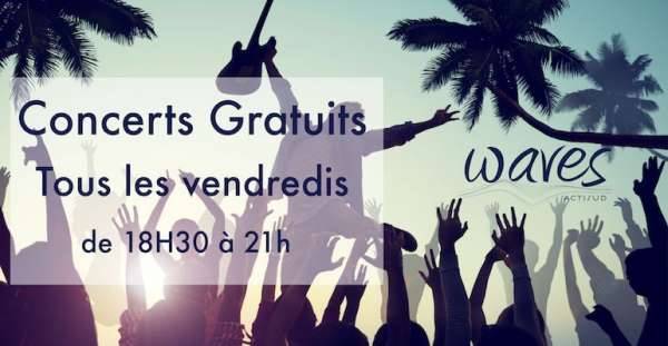 Envie d’assister à un concert tout en sirotant un petit cocktail bien frais - Du 7 juillet au 1er septembre, Waves vous propose pas moins de 8 concerts durant tout l’été (sauf le 14 juillet). Chaque vendredi de 18h30 à 21h, vous pourrez découvrir gratuitement un groupe ou un chanteur de votre région !