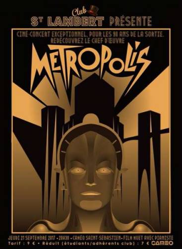 Le Club Saint-Lambert, en partenariat avec Caméo Officiel Nancy, vous propose une séance de cinéma muet avec le célèbre ’METROPOLIS’ de Fritz Lang, pionnier des films de science-fiction.